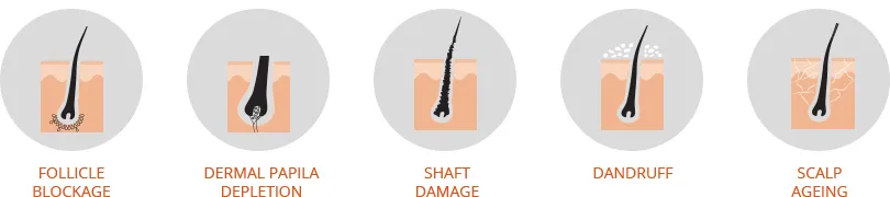 The solution addresses the primary reasons that cause hair fall, hair thinning and decreased hair density hair fall and thinning like Hair follicle damage, hair thinning, Shaft Damage, dandruff and Scalp Ageing
